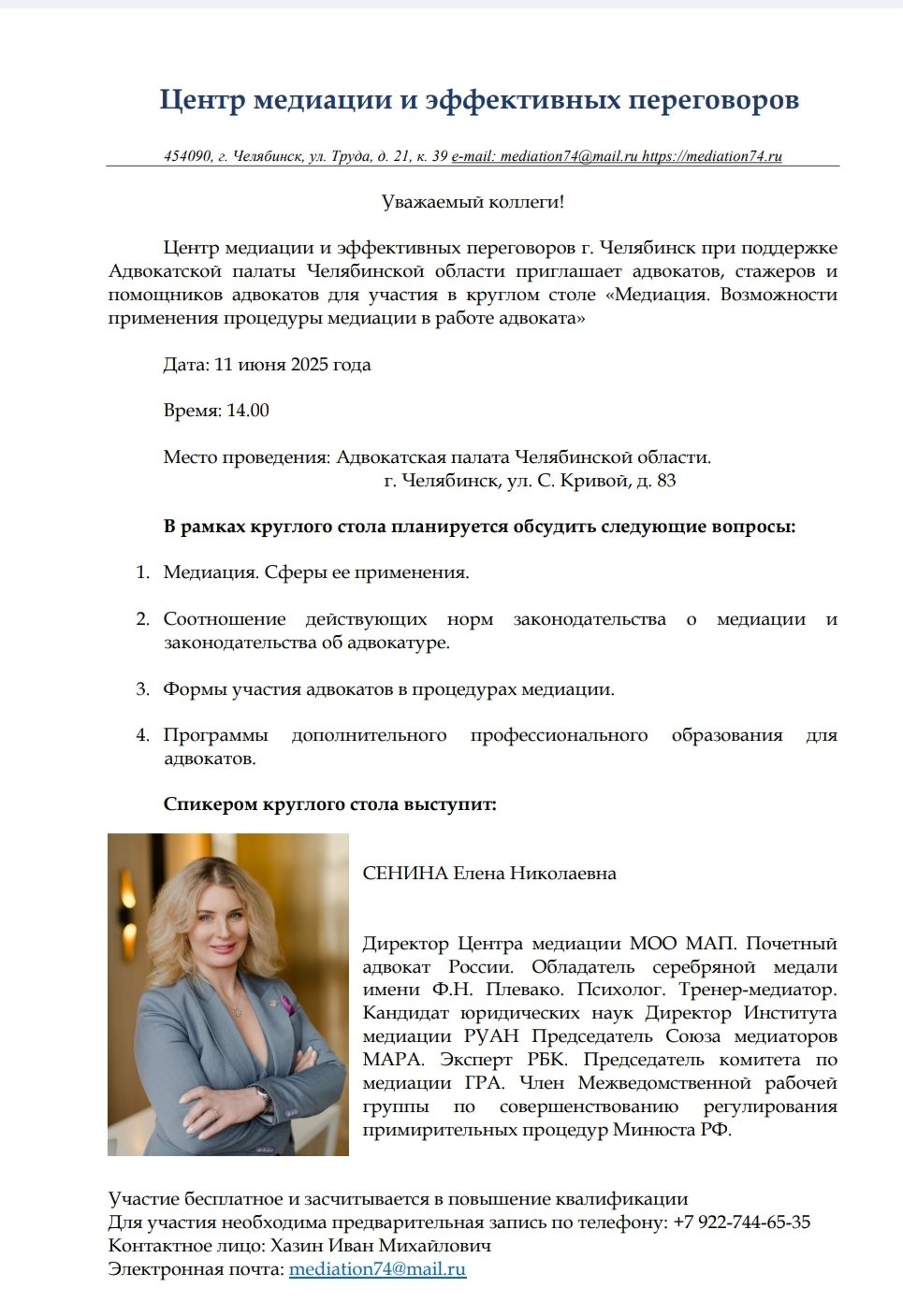 Основатель Центра медиации и эффективных переговоров Елены Сениной